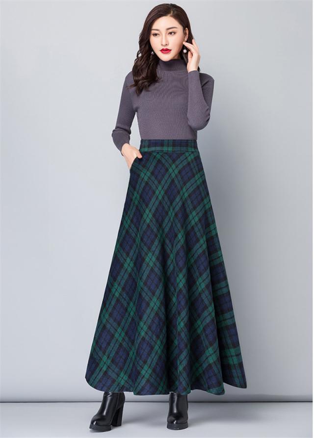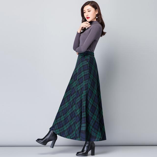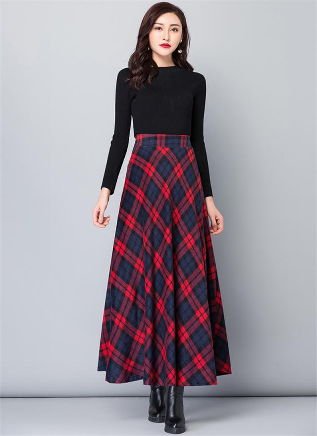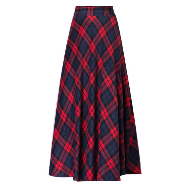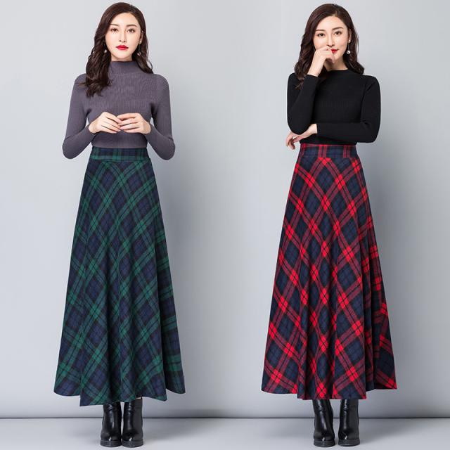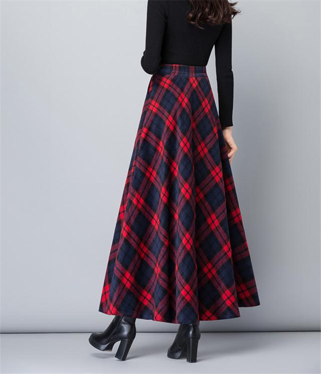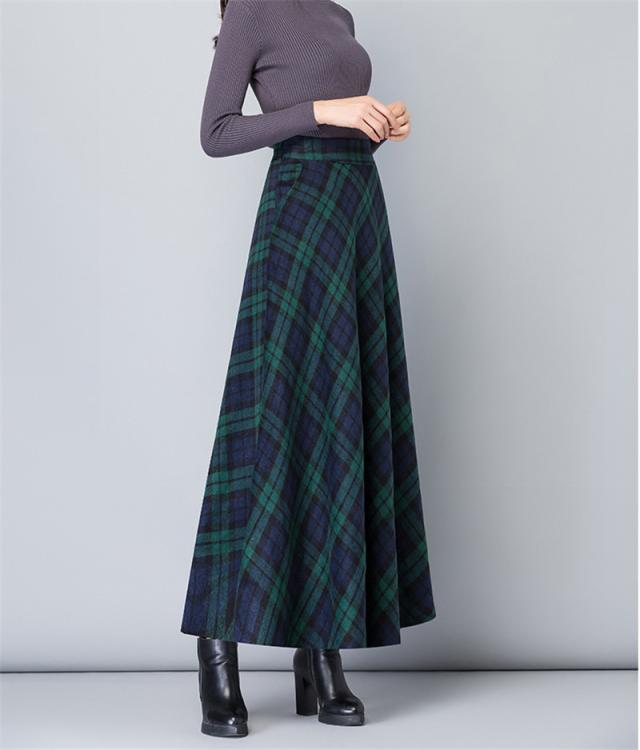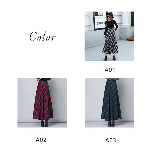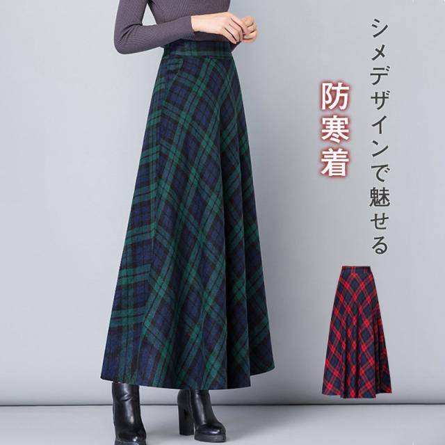 スカート レディース 厚手 秋冬 ロング丈 マキシスカート Aラインスカート チェック ハイウエスト 体型カバー お洒落 通勤 O