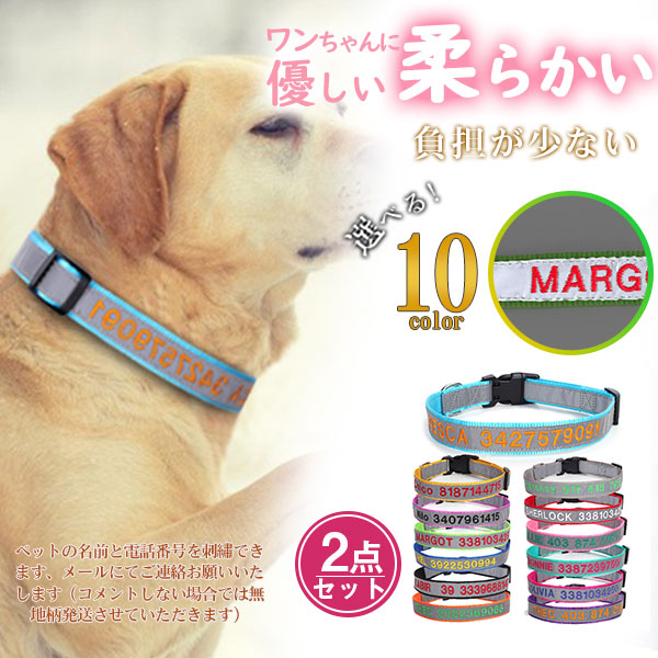 店長イチオシ 送料無料 犬 2点セット 首輪 犬用 反射 犬用迷子札 名前入れ 軽い ソフトパッド メッシュ 丈夫 蛍光 カラー かっこいい ドッグ