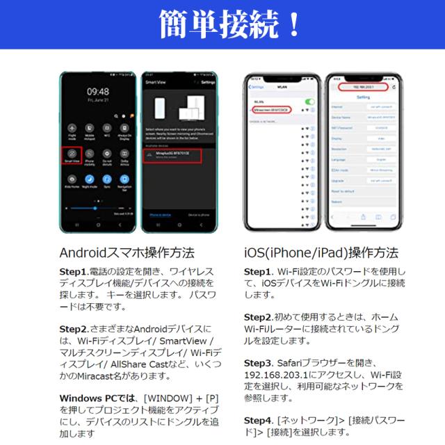 ●【モード切り替え不要接続】iPhone、iPad、iOS、 Android、Windows、タブレット、MAC OSシステム通用、Google chromecastも支持することができます。