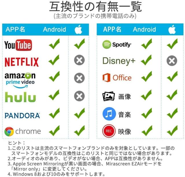 ※ご購入する前に必ずミラーリングとの互換性の有無一覧表を必ずご確認ください。