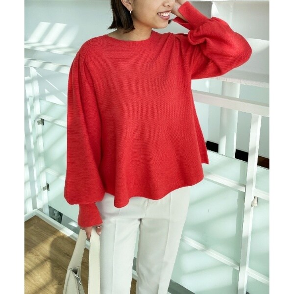 ・一枚で華やかに着れるペプラムデザインのニットプルオーバー。