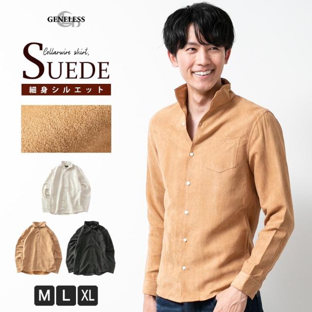 ジェネレス/シャツ メンズ スエード 長袖 イタリアンカラー 立ち衿 ベロア ワイシャツ Yシャツ
