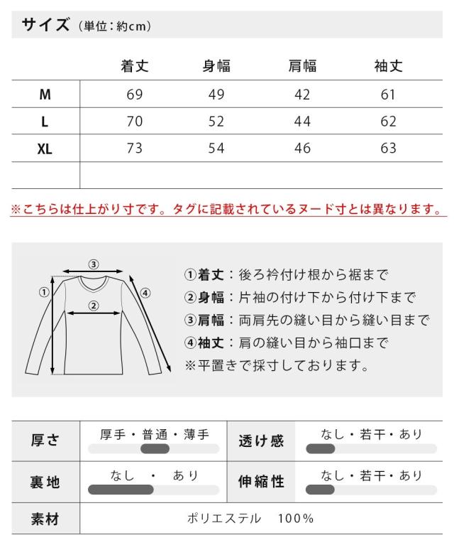 M : 着丈69cm 身幅49cm 肩幅42cm 袖丈61cm