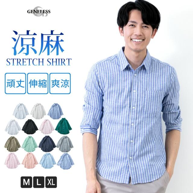 ジェネレス/リネン シャツ メンズ 七分袖 ストレッチ 綿麻 麻 コットンリネン M L LL XL
