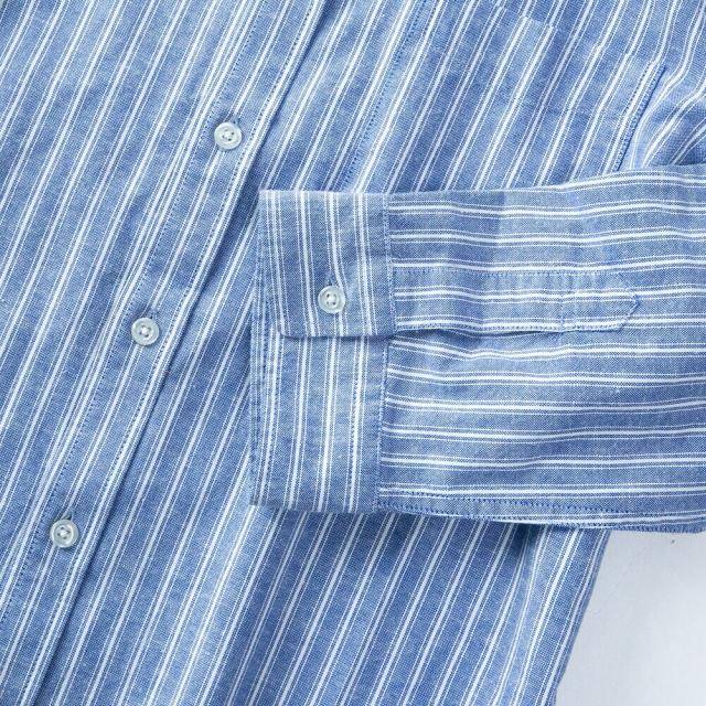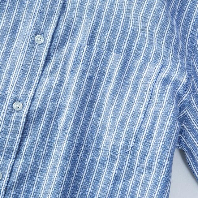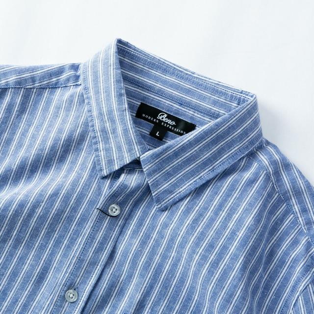 商品情報:シャツ メンズ リネン 七分袖 ストレッチ 綿麻 麻 綿 麻シャツ カジュアル ビジネス クールビズ コットンリネン 半袖シャツ テレワーク 白 黒 ブルー yシャツ ワイシャツ綿麻素材で涼しいストレッチシャツ!コットンリネン 7分袖 涼しい ストライプ 821L7203