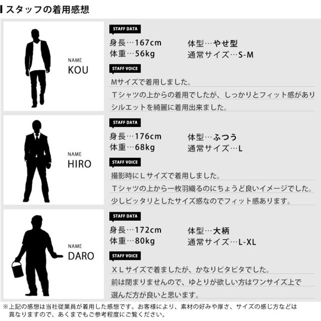 身長:188cm 体重:69kg 普段着用サイズ:L 着用サイズ:L
