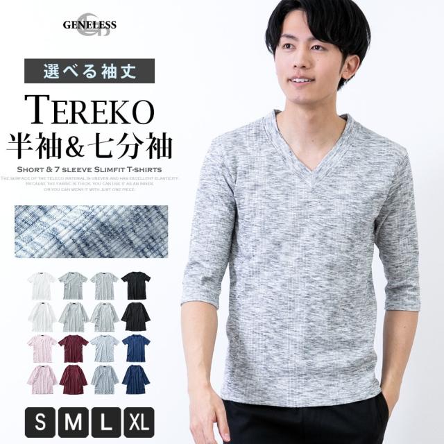 ジェネレス/Tシャツ メンズ 半袖tシャツ テレコ 7分袖 インナー トップス tシャツ 無地 シンプル
