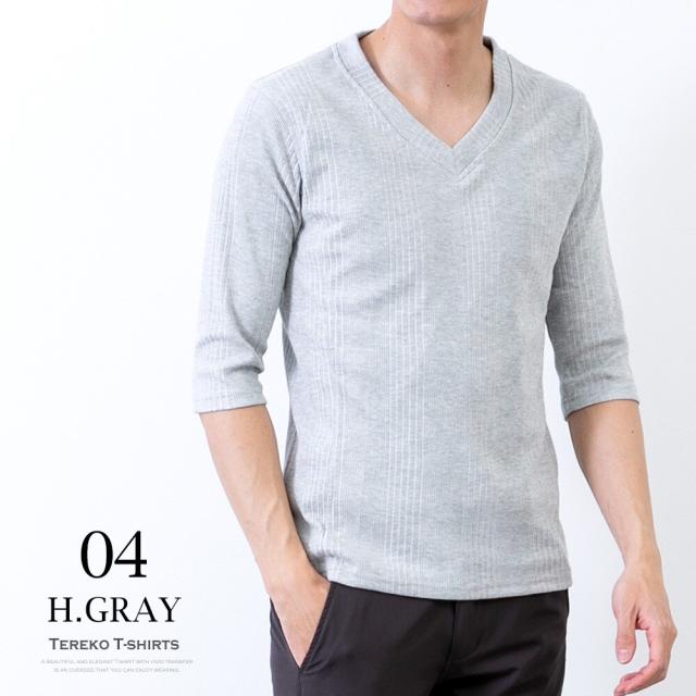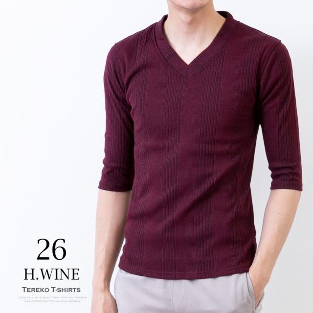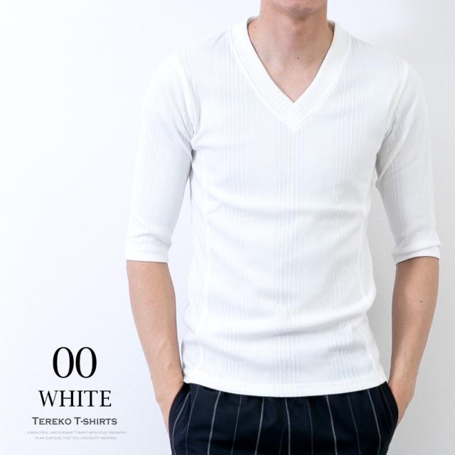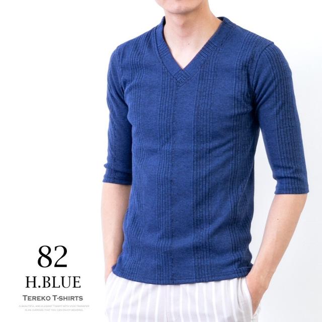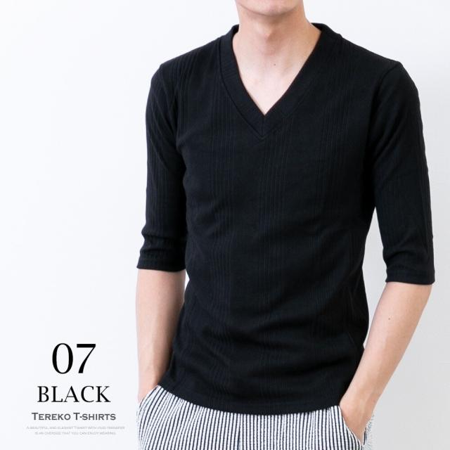 商品名:Tシャツ メンズ 半袖tシャツ テレコ 7分袖 インナー トップス tシャツ 無地 シンプル Vネック
