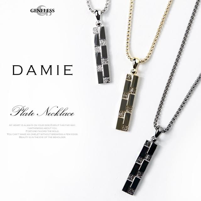 ジェネレス/ネックレス メンズ プレート ダミエ シンプル ブラック シルバー チェーン シルバーネックレス