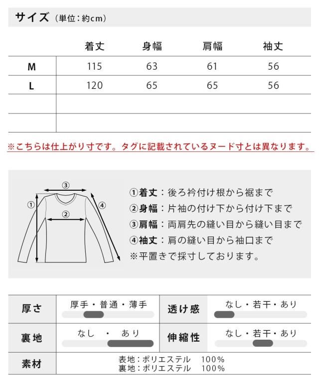 L : 着丈120cm 身幅65cm 肩幅65cm 袖丈56cm