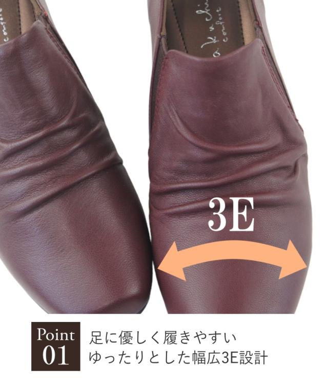 ゆったり3E幅で、外反母趾や甲高・幅広でお悩みの方にもおすすめです。