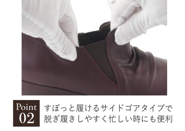 サイドゴアで脱ぎ履きしやすく、足にしっかりとフィットします。