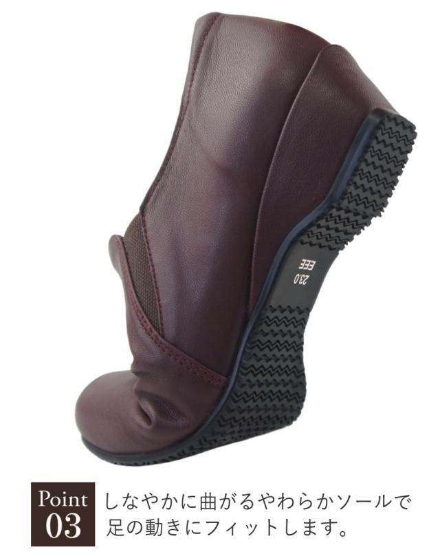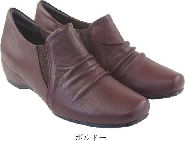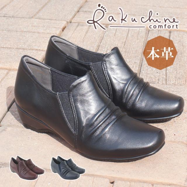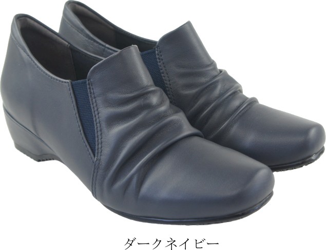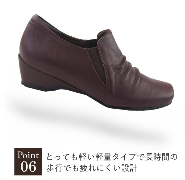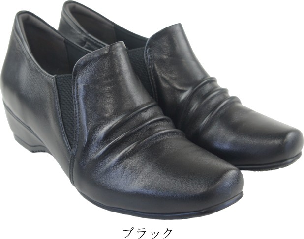 本革 スリッポン カジュアルシューズ レディース レザー コンフォートシューズ 履きやすい 歩きやすい 疲れにくい 旅行 ウェッジソール サイドゴア 母の日 敬老の日 プレゼント 黒 htc7500