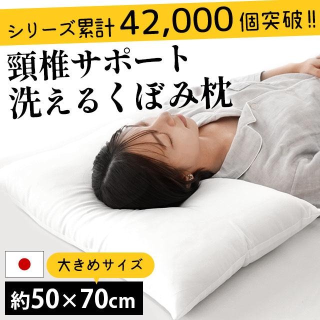 枕 肩こり くぼみ型 敬老の日 バースデー ウォッシャブル枕 50×70cm 大きめ 洗える 国産 頭部安定 寝返り 日本製 まくら わた枕 シンプル ギフト
