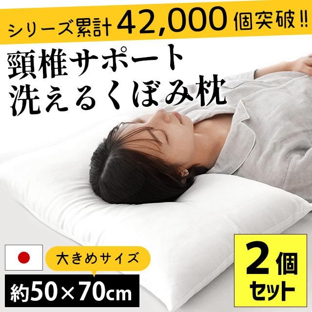 枕 肩こり ※2個セット くぼみ型 ウォッシャブル枕 50×70cm 大きめ 洗える 国産 頭部安定 寝返り 日本製 まくら わた枕 シンプル