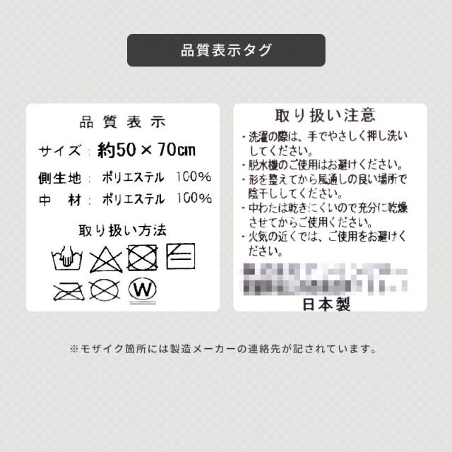 | 組成 | 側生地:ポリエステル100% 中わた:ポリエステル100% |