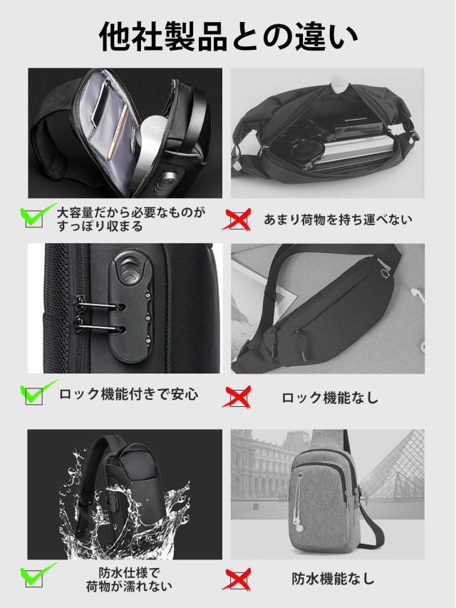 ボディバック ショルダーバック レディース メンズ 斜めがけ 大容量 小さめ バッグ 小型 軽い 収納 ipad ワンショルダー スタイリッシュ 防水 出張 メンズバック レディースバック 多機能 通勤 通学 旅行 カバン