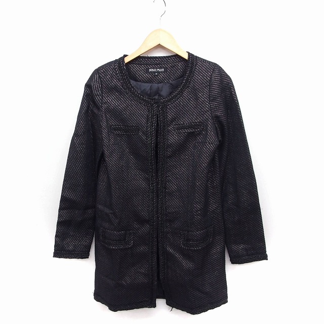 【中古】ソロプラスユリエニタニ SOLO/PLUS YURIE NITANI ノーカラー コート アウター ラメ ミドル丈 ウール混 38 黒