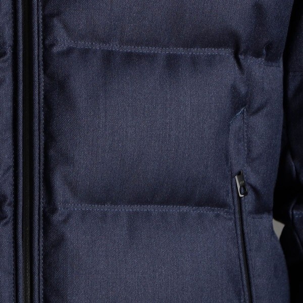 ■素材:18ベージュ/19ライトグレー/39チャコールグレー/49ブラック/67ネイビー:本体:毛100%(裏側ポリウレタンフィルム使用) 前身頃裏地:キュプラ100% 袖裏・後身頃裏地・フード裏地:ポリエステル64% 複合繊維(ポリエステル)36% 中わた:ダウン80% フェザー20%