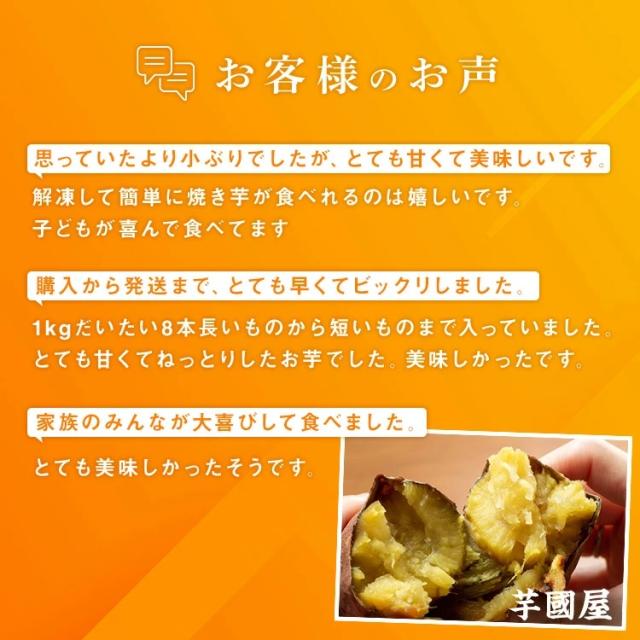 低温で長時間じっくり焼き上げることでサツマイモの甘みを最大限に引き出しています。1kgで6~8本入っております。