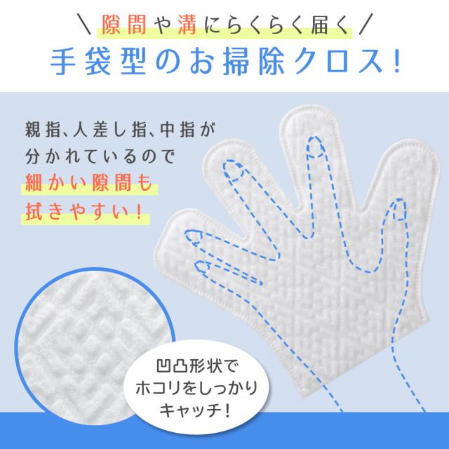 【定形外出荷】ホコリ汚れ取りワイパー手袋 15枚 使い捨て お掃除手袋 不織布 モップ手袋 ホコリ取り エアコン サッシ すきま掃除 ワイパーミトン 手袋型クロス お掃除グローブ 左右兼用 両面使える