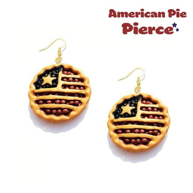 かわいいアメリカの国旗をイメージしたパイが印象的なファッションピアスです。クリスマスシリーズで大人気のピアスです。パイならではの落ち着いた色合いと立体感のあるモチーフが可愛さの中にもフェミニンな雰囲気を感じさせてくれます。見る人の目を引く個性的なデザインは、ジュエリーを主役にした着こなしにもピッタリで、大人の遊び心を見せたい時にもお勧め。細部まで精巧に象られた星条旗パイデザインです。フォーマルから休日までどんなシーンにも合います