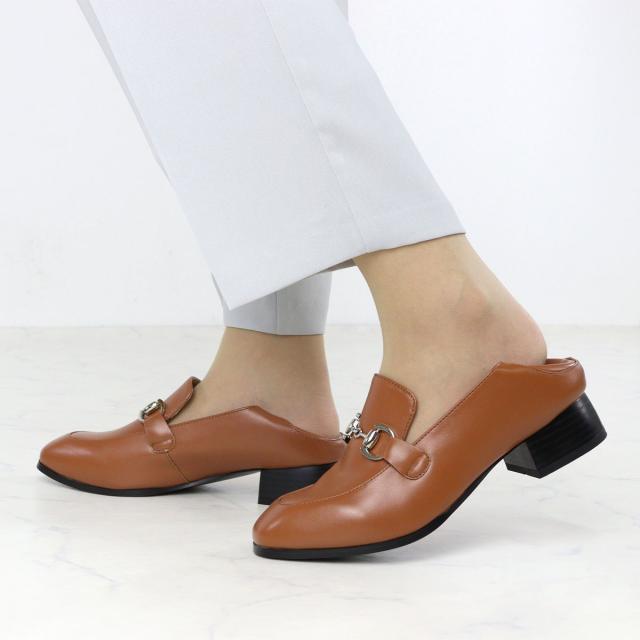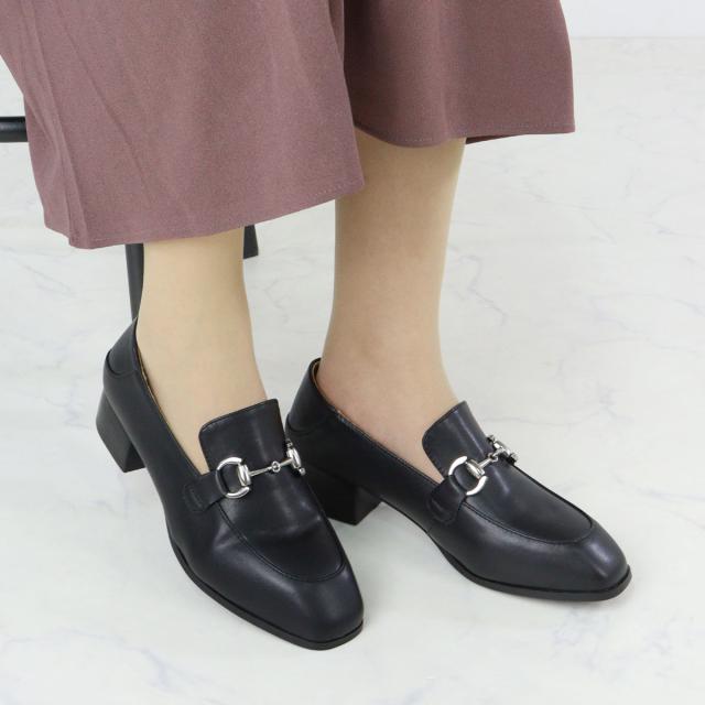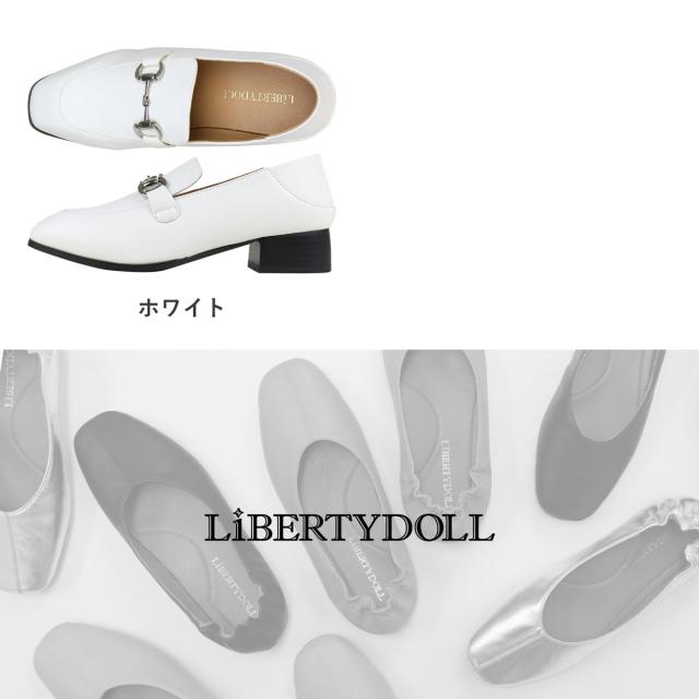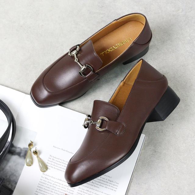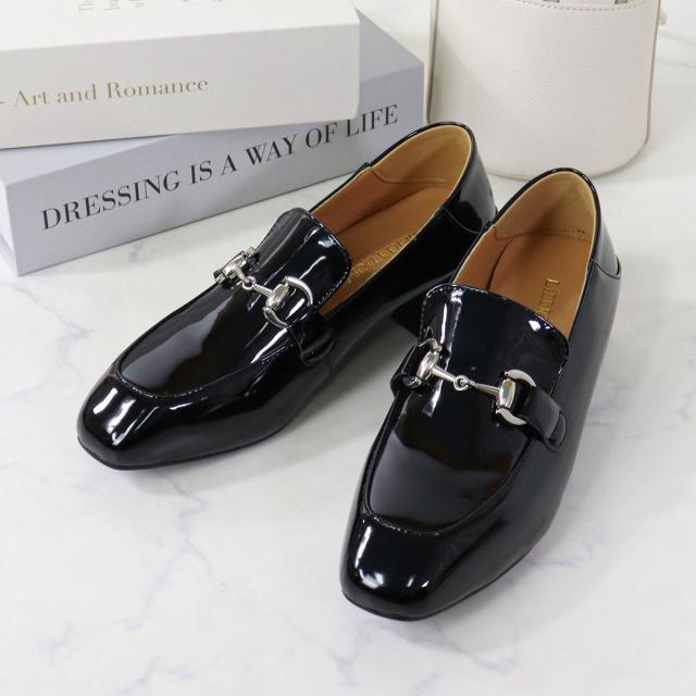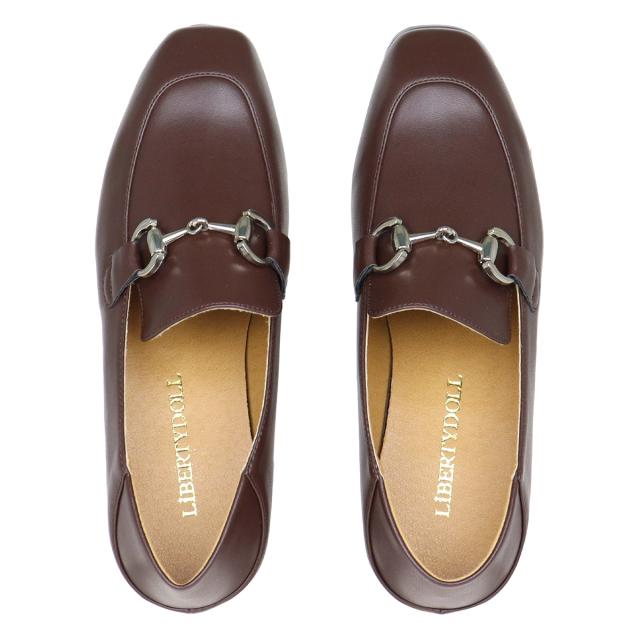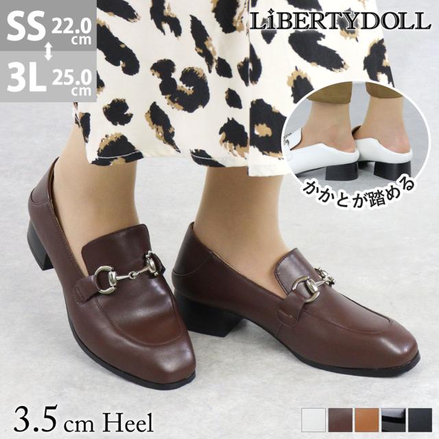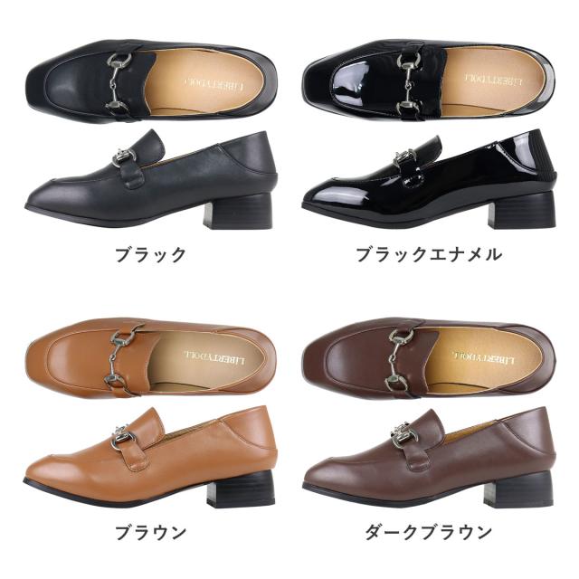 ローファー レディース かかと 踏める バブーシュ すぐ履ける 3.5cmヒール ビット スクエアトゥ No.3027 22.0-25.0cm 太ヒール 安定感 黒 ブラック 茶 ブラウン 革靴 歩きやすい 痛くない 合成皮革 エナメル 婦人靴 カジュアル 20 30 40 50 代 LiBERTYDOLL リバティードール