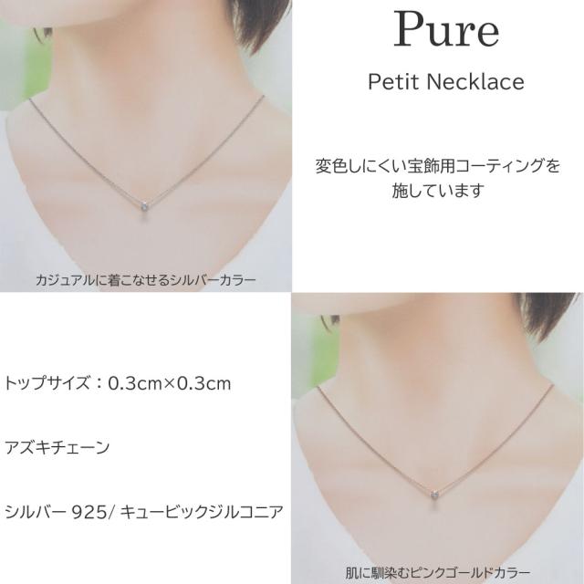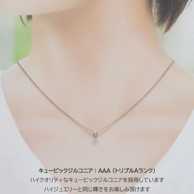 ネックレス プチネックレス 1粒 1石 レディース シルバー ピンク ゴールド ペンダント プチペンダント キュービック シンプル 37cm 42cm 変色防止