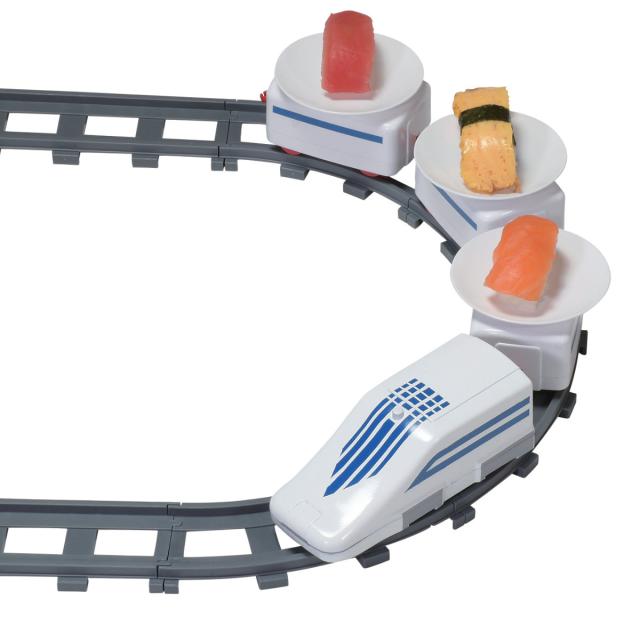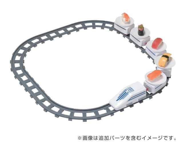 | 内容量 | 先頭車両:1個、連結車両:3個、 直線レール:2本、曲線レール:8本、寿司皿:6枚 |