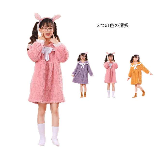 キッズ パジャマ 長袖 姫 パジャマワンピース リボンパジャマ 寝巻き 女の子 女児 秋冬 おしゃれ 子供 送料無料 子供パジャマ 長袖ワンピース ジュニア ルームウエア かわいい ルーム 寝間着