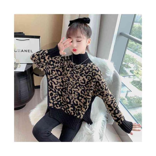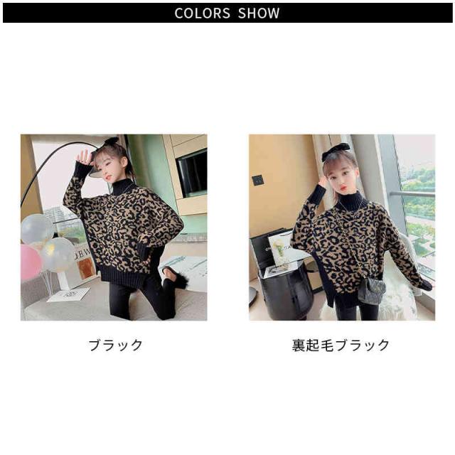 ニットセーター キッズ 秋冬 裏起毛セーター ヒョウ柄セーター インナーセーター ハイネック セーター セーター おしゃれセーター 長袖 プルオーバー インナーウエア 女の子 子供服 送料無料 おでかけ