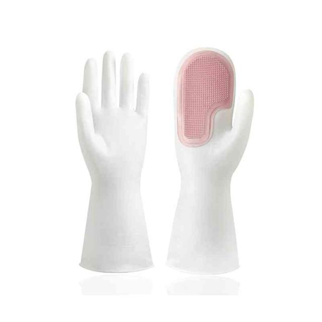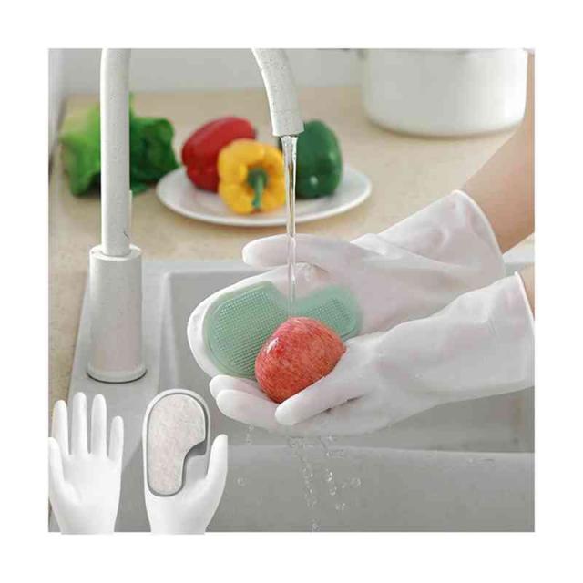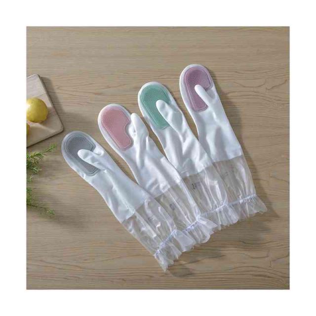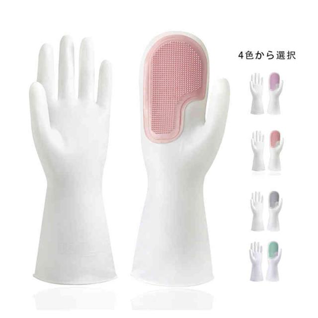 キッチングローブ キッチンブラシ クリーニンググローブ 食器洗い グローブ キッチン手袋 炊事手袋 ブラシ付き 滑り止め PVC ビニール製 洗車 キッチン ガーデニング 掃除 洗濯 食器洗い キッチン用品