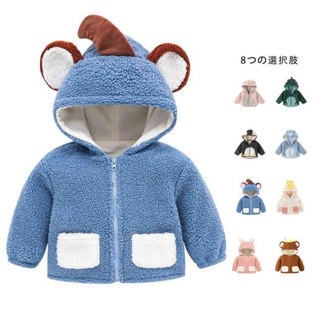 ジャケット 子供 コート 防寒 長袖 もこもこ ボアジャケット フランネル かわいい クマ うさぎ サメ フード付き 子供服 キッズ 男の子 女の子 ベビー服 萌え 上着 柔らかい 保温 軽量 アウター 秋冬 普段着 お出かけ 通園 通学 73-120cm