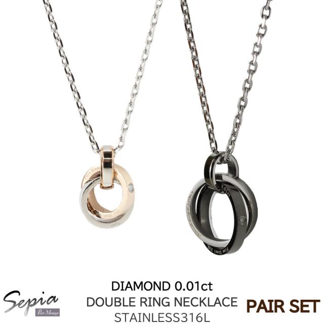 ネックレス ペンダント レディース メンズ ペア 20代 30代 40代 50代 ステンレス ダイヤモンド ダブル リング シルバー ゴールド ラインストーン 金属アレルギー 対応