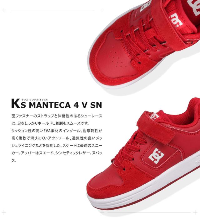 dc スニーカー キッズ 黒 ディーシーシューズ マンテカ 4 ジュニア ローカット スケートシューズ スケシュー ダンスシューズ ヒップホップ b系 面ファスナー ゴム紐 カジュアル スムース 靴 男の子 女の子 ブラック レッド KS MANTECA 4 V SN dk224001