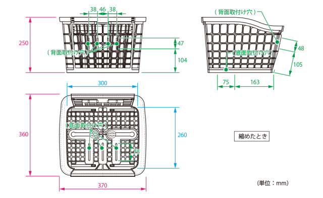 底面目安サイズ(内寸)/幅300(480)x奥行260