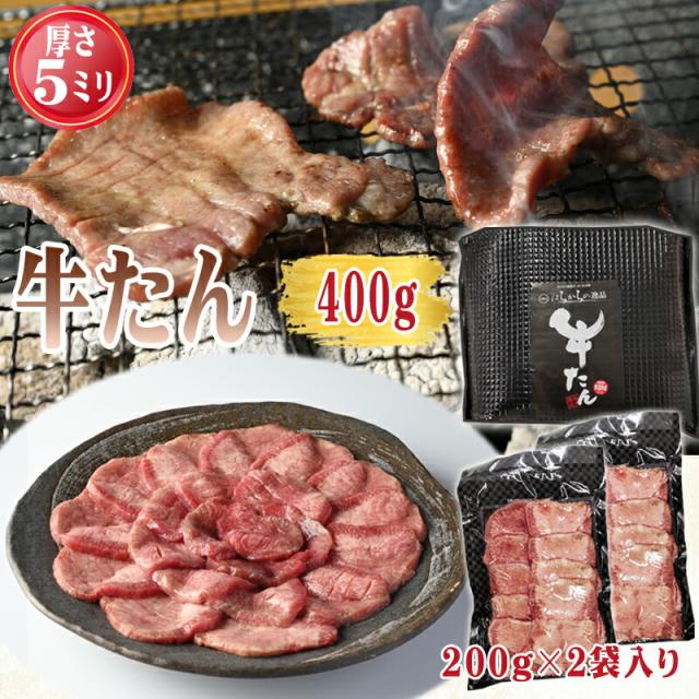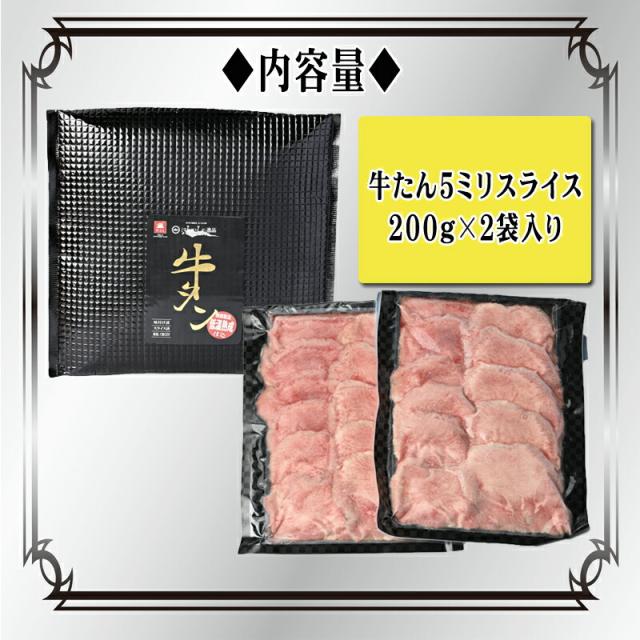 牛タン 400g (200g×2袋) 5ミリ スライス (約3~4人分) お歳暮に最適 ギフト 送料無料 はらから 冷凍 [牛たん 400g (5mm 200g×2)]