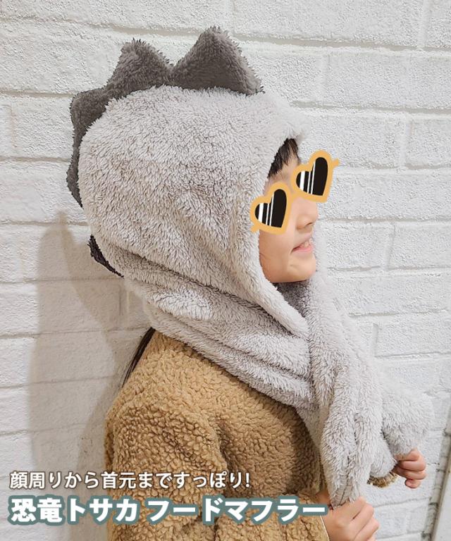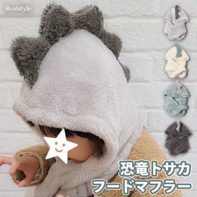 新作 フードマフラー 子ども キッズ 女の子 男の子 恐竜 ボア もこもこ ふわふわ 帽子 ネックウォーマー 暖かい かわいい シープタッチ 裏起毛 防寒