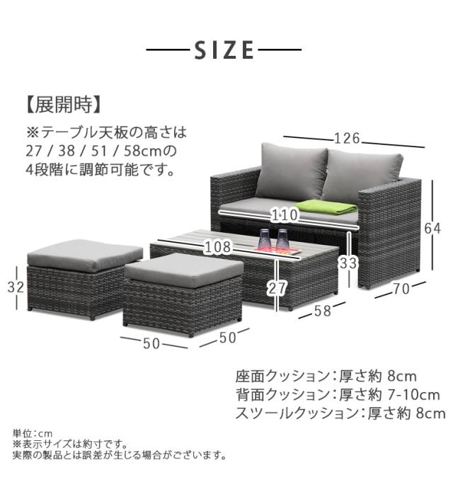本体:人工ラタン(PE籐/ポリプロピレン)・アルミ