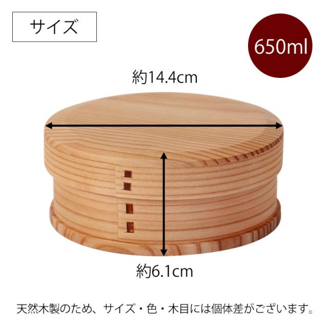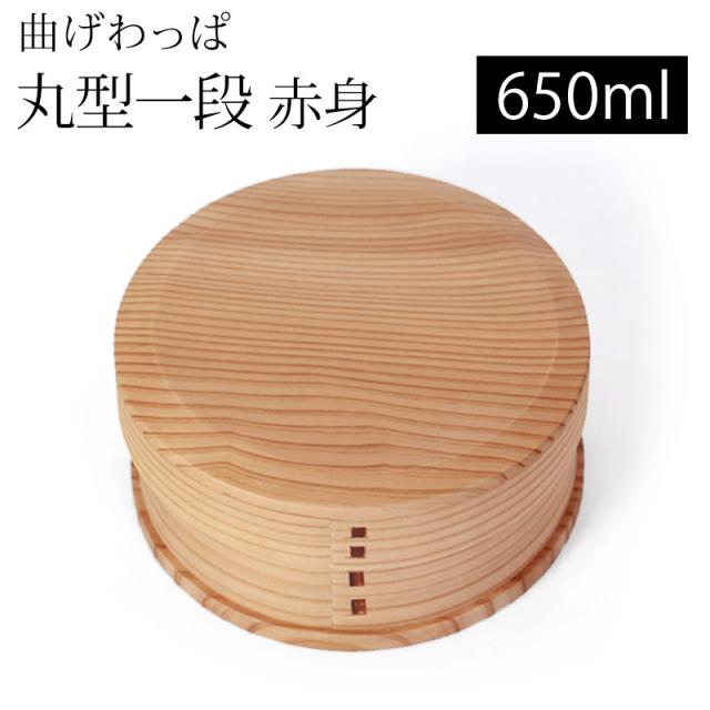 曲げわっぱ お弁当箱 650ml 赤身 丸型 1段 天然木製 曲げわっぱ弁当箱 まげわっぱ ランチボックス 一段 仕切り付き 和風 男子 女子 大人 子供 女の子 男の子 おしゃれ ナチュラル シンプル 運動会 遠足 送料無料