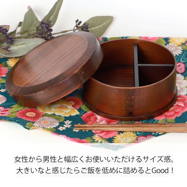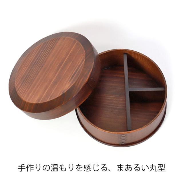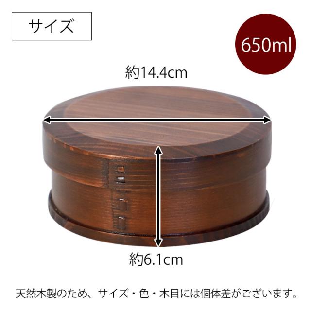 曲げわっぱ お弁当箱 650ml 漆塗り 丸型 1段 天然木製 曲げわっぱ弁当箱 まげわっぱ ランチボックス 一段 仕切り付き 和風 男子 女子 大人 子供 女の子 男の子 おしゃれ ナチュラル シンプル 運動会 遠足 送料無料