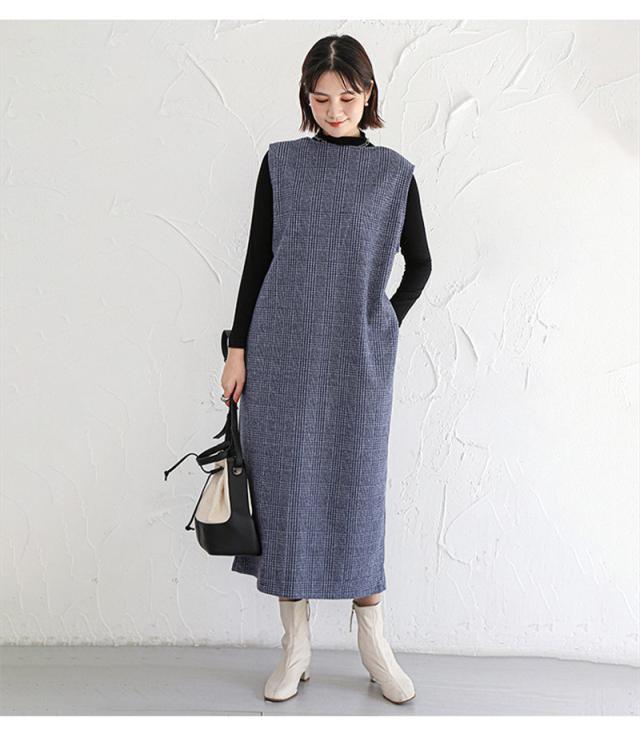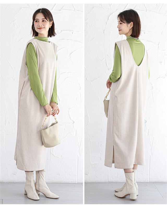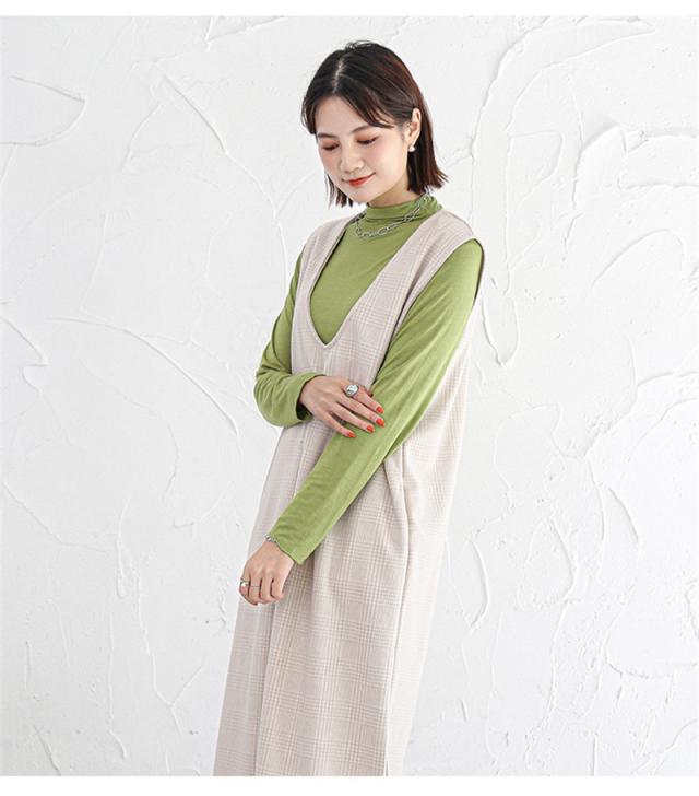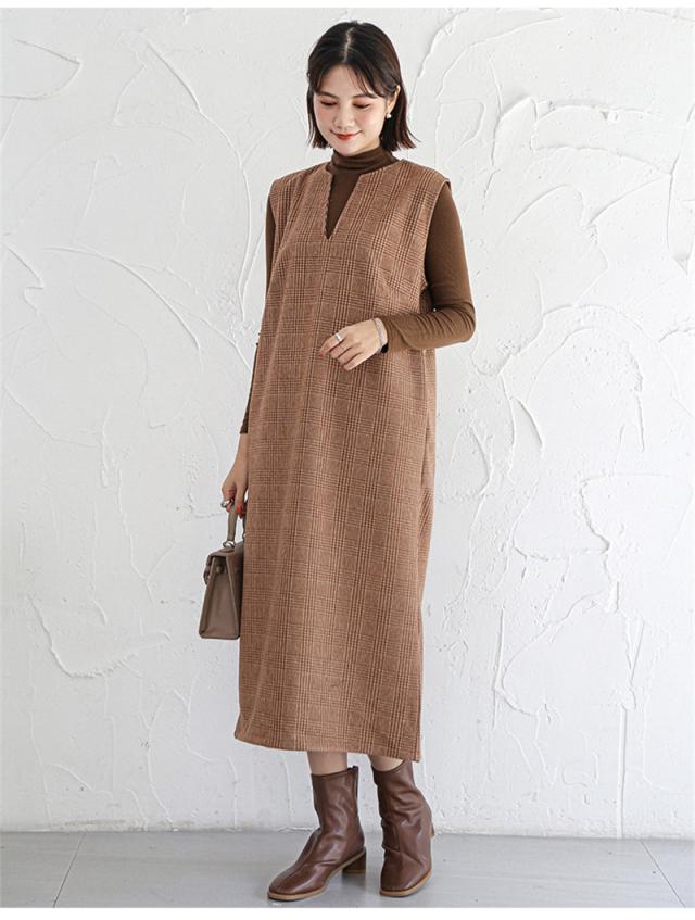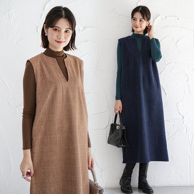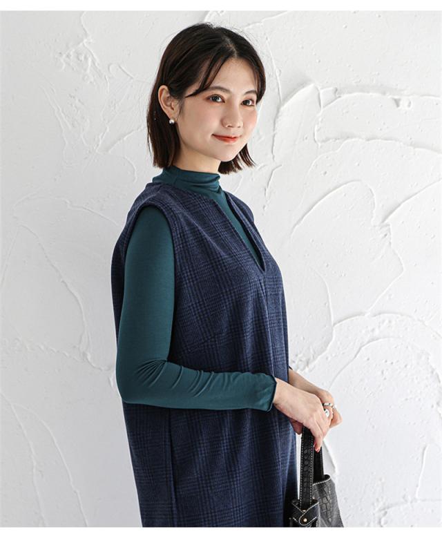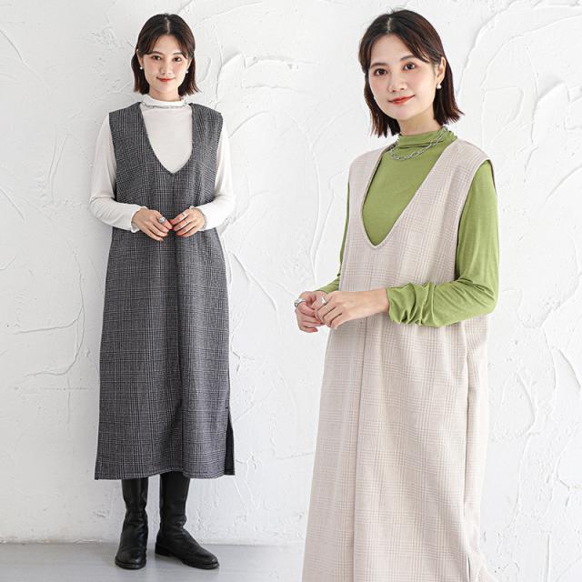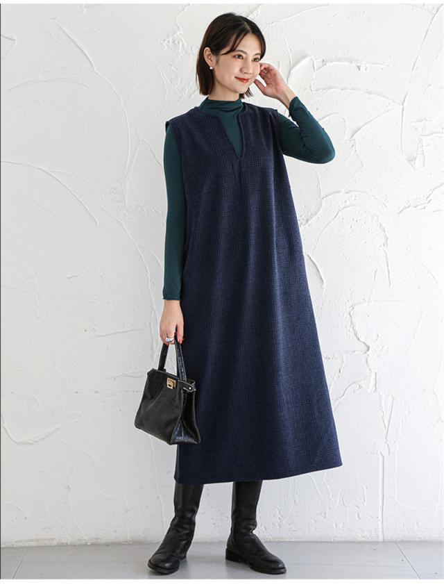 ★キーワード:Iライン ワンピース ジャンパースカート vネック 大人 秋 冬 秋冬 レディース 大きいサイズ きれいめ おしゃれ オフィスカジュアル セット ジャンスカ 膝丈