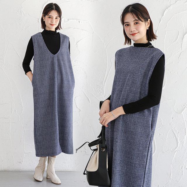 ジャンパースカート ノースリーブワンピース 2way ジャンスカ vネック マタニティ レディース 春秋冬 体型カバー ストレート