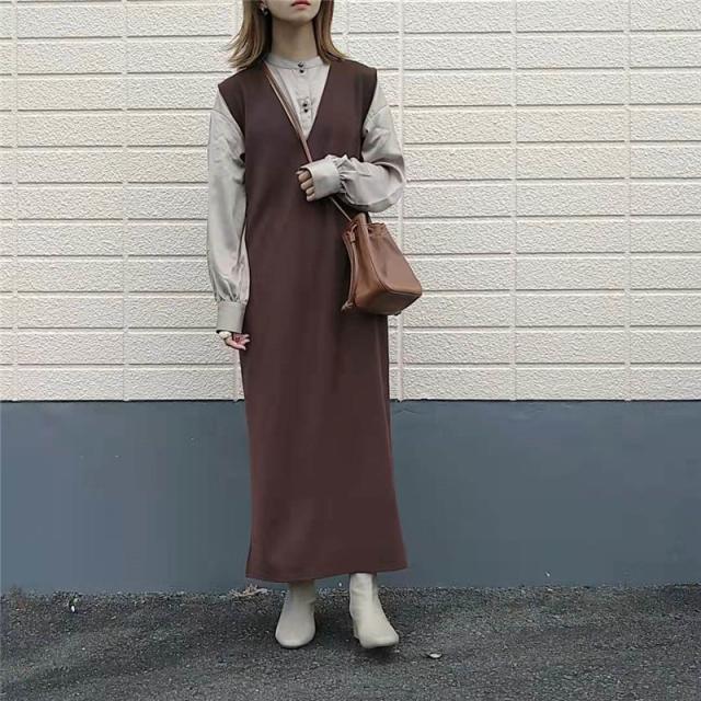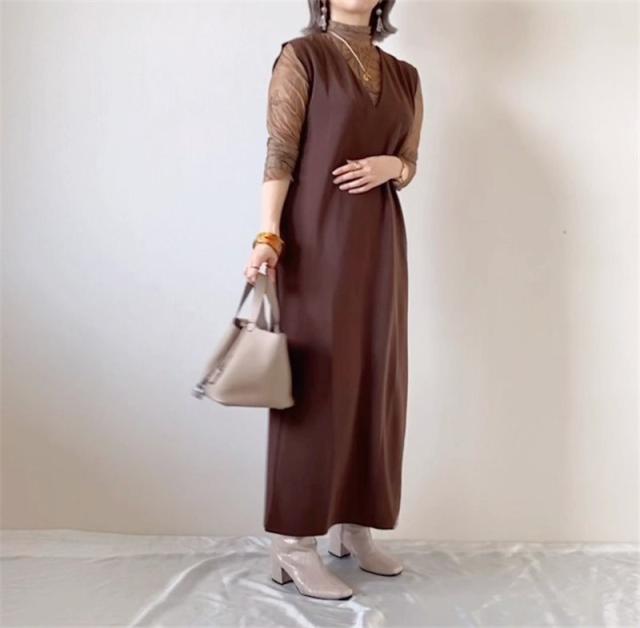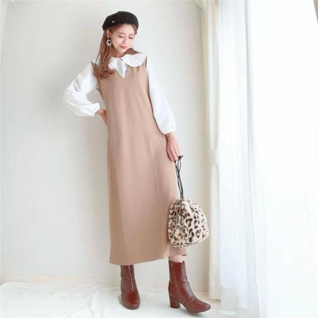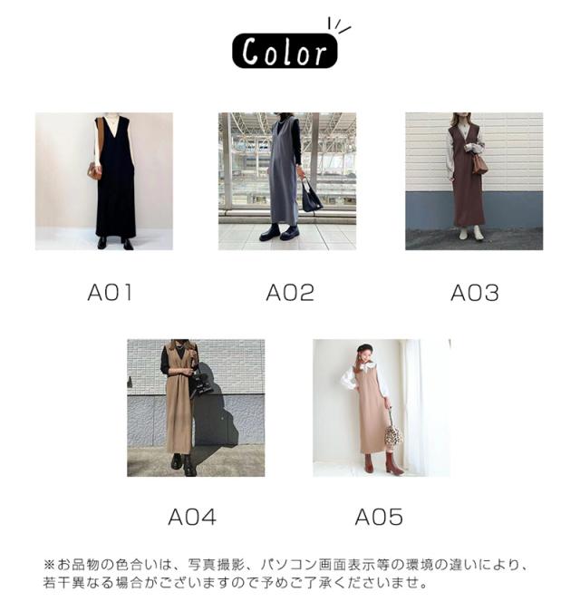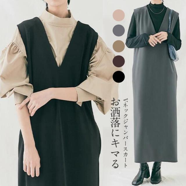 ★キーワード:Iライン ワンピース ジャンパースカート vネック 大人 秋 冬 秋冬 レディース 大きいサイズ きれいめ おしゃれ オフィスカジュアル セット ジャンスカ 膝丈