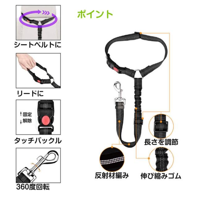 ペット用リード 犬 猫 シートベルト ストラップ ヘッドレストに掛けるだけ お出かけ ドライブ 病院 帰省 散歩 旅行 車 首輪 固定 飛び出し転落防止 安全 調節可