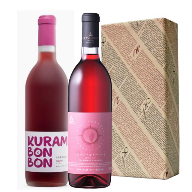 くらむボンボン アジロン・五ヶ瀬キャンベルアーリーロゼ やや甘口 720mlのみくらべセット 国産ワイン 日本