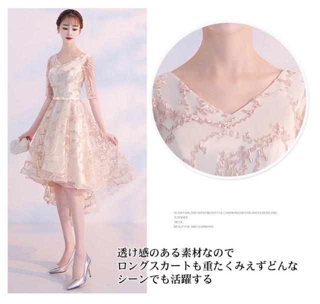 ロングドレス 6色 結婚式 ハイウエスト 五分袖 パーティードレス 黒 全3種類 6色 袖付き ドレス ロングドレス ミモレ丈 膝丈 ミディアム丈 ミモレ丈 テールカットドレス 演奏会