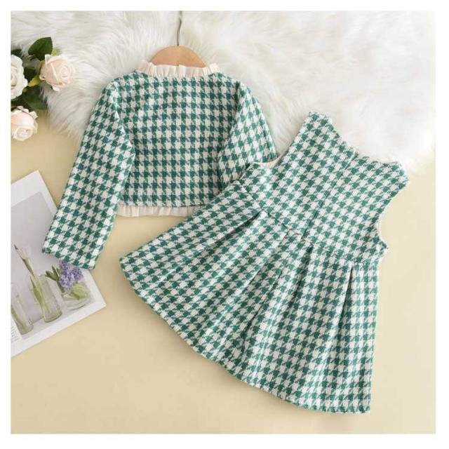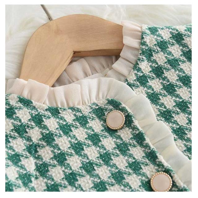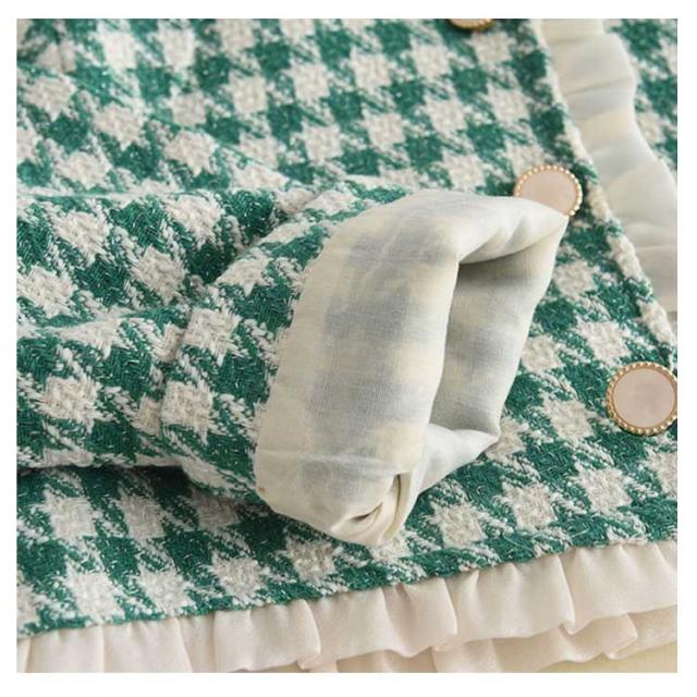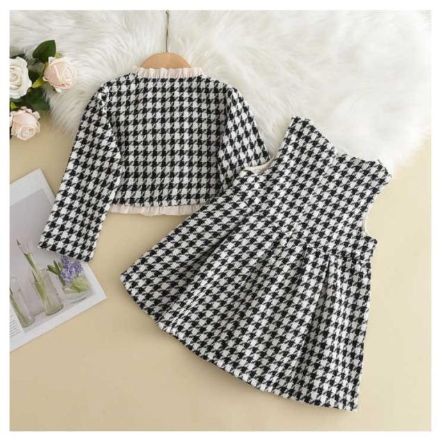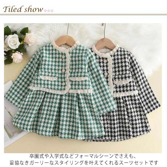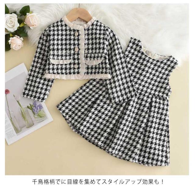 | ジャケット+ワンピーススーツの2点セット 卒園式や入学式などフォーマルシーンでさえも、 妥協なきガーリーなスタイリングを叶えてくれるスーツセットです 千鳥格柄でに目線を集めてスタイルアップ効果も! いろんなシーンに合わせてお使いいただけます!! | |