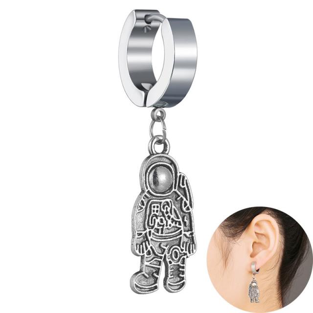 シンプルなリングピアスに可愛いポーズの宇宙服を着た宇宙飛行士が揺れるお洒落なフープピアスです。