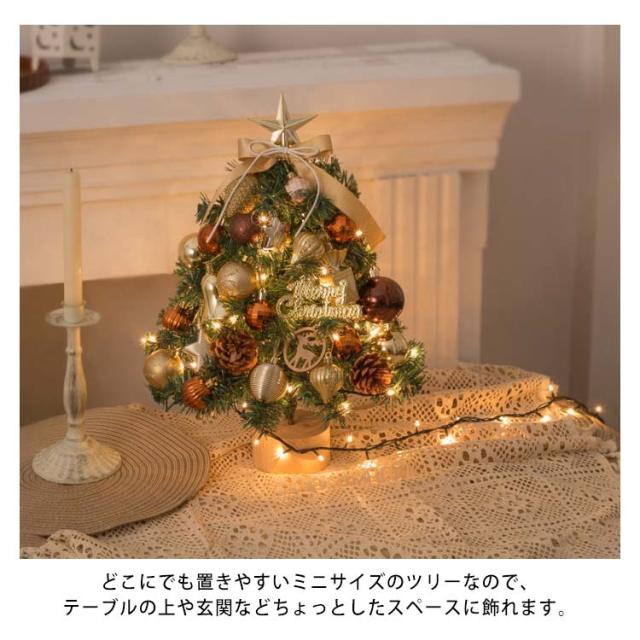 | 45cm卓上クリスマスツリーはクリスマス飾りの定番商品として、クリスマス雰囲気を演出して、活気が溢れています。 可愛らしいデザインと華やかな飾り。お子様たちへのクリスマスプレゼントに最適! どこにでも置きやすいミニサイズのツリーなので、テーブルの上や玄関などちょっとしたスペースに飾れます。 電池式のLEDライトは充電の必要がなく、3本の単3電池を入れ点灯させると綺麗に輝きます。(ご注意:電池が付属していません。) | |